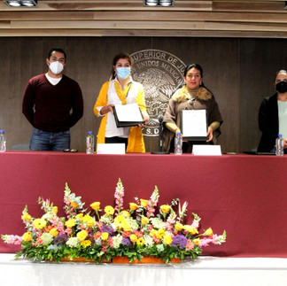 A la firma del convenio, acudieron las Magistradas Marisol Barba Pérez, Anel Bañuelos Meneses, el Magistrado Enrique Acoltzi Conde; así como las Consejeras Dora María García Espejel, Edith Alejandra Segura Payán, y el Consejero Víctor Hugo Corichi Méndez.
