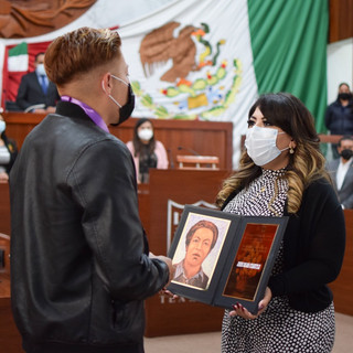 Las y los diputados de la LXIV Legislatura del Congreso del Estado de Tlaxcala realizaron la entrega de la presea al arte “Maestro Desiderio Hernández Xochitiotzin” al pintor Jesús Rojas Cuahutle en sesión extraordinaria solemne y pública, por su obra “Cuna del Mestizaje” derivado de la convocatoria “Trazos de mi Tierra Tlaxcala”.