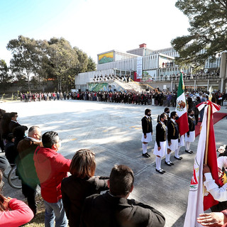 En cumplimiento a una instrucción de la gobernadora Lorena Cuéllar Cisneros, el sector educativo reanudó este lunes 29 de noviembre el homenaje a la bandera, después de un año ocho meses que se suspendieron las actividades cívicas derivado de la pandemia por Covid-19.