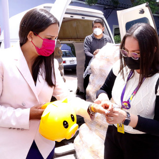 La promotora de recolección estatal del Teletón, María Esther López entregó a la presidenta honorífica y a la directora general del Sistema Estatal DIF, Mariana Espinosa de los Monteros Cuéllar y Flor López Hinojosa, respectivamente, las alcancías para la colecta de este año, en el que participarán los sistemas municipales DIF, así como algunas dependencias del gobierno estatal.