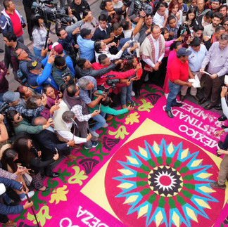 Con artesanos de la entidad, recibió como obsequio un cuadro con su imagen elaborado artesanalmente, además, caminó sobre una alfombra de aserrín distintiva del municipio de Huamantla, la cual fue regalado por artesanos de ese municipio.