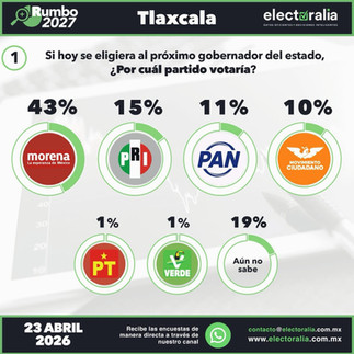 #GraphosCc #Tlx #Noticias | De acuerdo a la encuestadora Electoralia Morena ganaría la gubernatura en 2027