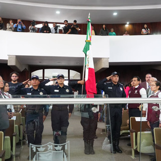 Este lunes, en sesión extraordinaria, pública y solemne, las y los diputados integrantes de la LXIV Legislatura, develaron las letras doradas en el Muro de Honor de la Sala de Sesiones del Palacio Juárez, Recinto Oficial del Poder Legislativo del Estado Libre y Soberano de Tlaxcala, con la leyenda “Instituto Politécnico Nacional”.