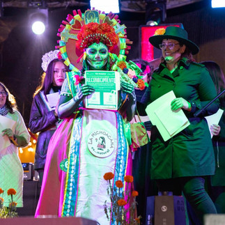 Para cerrar con broche de oro, se realizó el Concurso de Catrinas y Catrines, en las categorías empresarial, tradicional y disfraz libre, donde se reconoció el ingenio y la originalidad de los participantes. Se premiaron los tres primeros lugares de cada categoría con incentivos económicos de 3,000, 2,000 y 1,000 pesos, respectivamente.