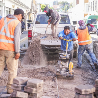 En una primera etapa se realiza la nivelación del adoquín y la conformación de las capas de terracería e hidráulica, que permitirán reforzar la base del pavimento y garantizar mayor durabilidad frente al tránsito pesado.