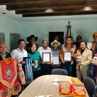 En la Presidencia Municipal, el Alcalde David Vega Terrazas, entregó reconocimientos a Carlos Gómez Vásquez, artesano de madera, Juan Antonio Serrano Muñoz y Aldo Filemón Morales Jiménez, ambos dedicados al bordado y confección de trajes de carnaval.