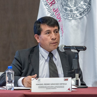 Como parte del conversatorio de inducción denominado “El Poder Judicial y los municipios, una relación clave para el derecho humano de acceso a la justicia”, el magistrado titular de la Segunda Ponencia de la Sala Penal y Especializada en Administración de Justicia para Adolescentes, Pedro Sánchez Ortega, dio a conocer ante presidentas y presidentes municipales de Tlaxcala, la estructura orgánica del Tribunal Superior de Justicia en el Estado (TSJE).
