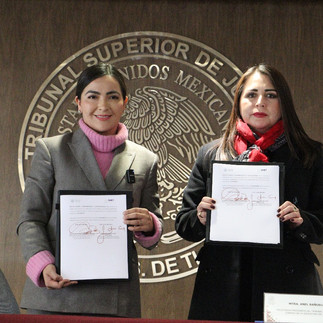 La titular de la Secretaría de las Mujeres de Tlaxcala (SMET), Nydia Cano Rodríguez y la magistrada Anel Bañuelos Meneses, presidenta del Tribunal Superior de Justicia y del Consejo de la Judicatura del Estado (TSJ-CJE), refrendaron su solidaridad, visión y responsabilidad mediante la firma del Convenio de Colaboración Interinstitucional en materia de prevención, capacitación y atención a las violencias contra las mujeres.