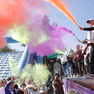 Ahí no terminó todo. Frente al escenario, las familias se congregaron para cerrar con broche de oro este evento, participando de una fiesta de colores; la explosión inundó toda la carretera federal, por unos minutos el asfalto era un arcoíris, un lienzo inigualable.